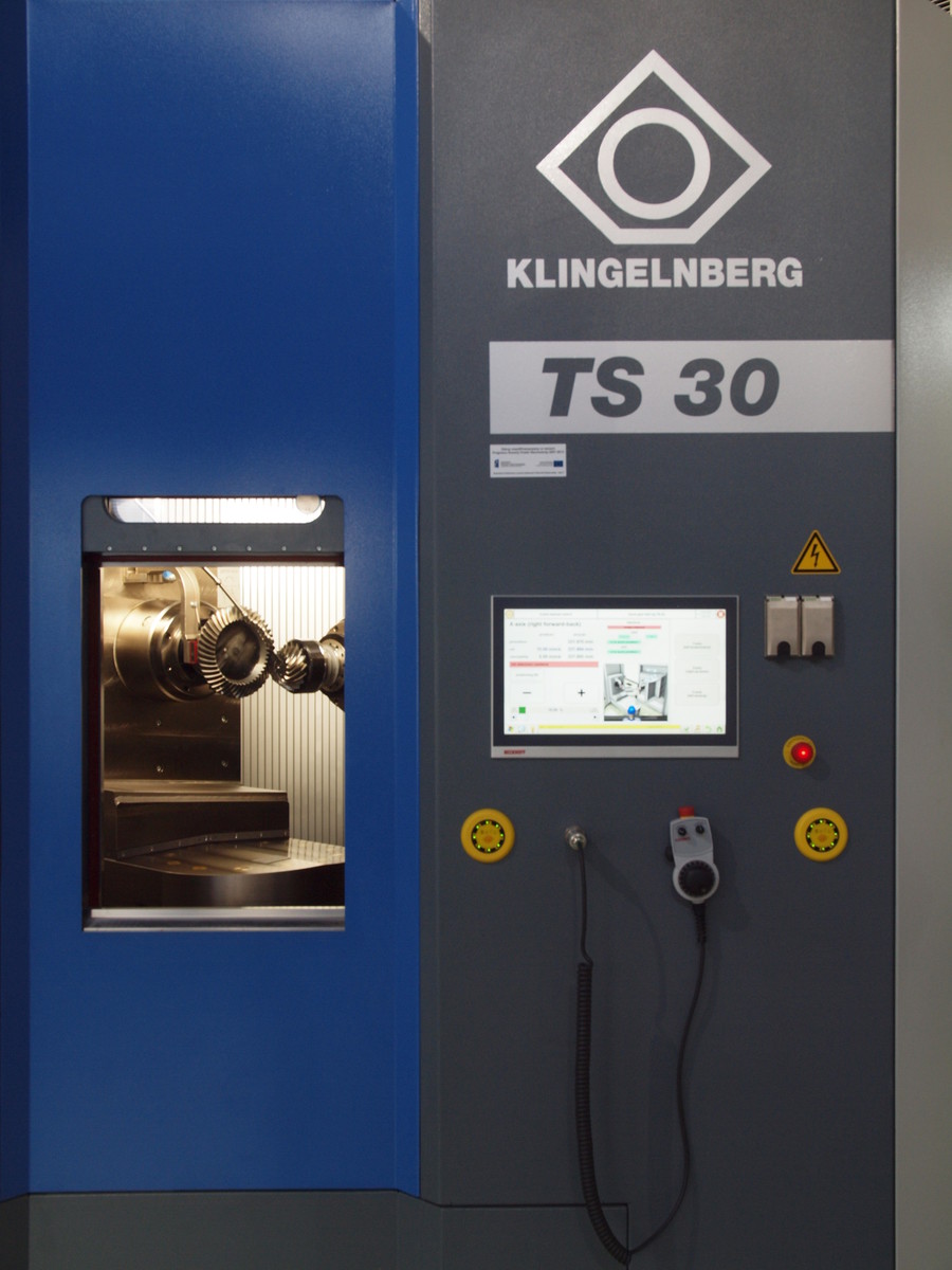 - wyposażenie w system pomiarowy do kontroli ustawionych wielkości związanych z kołami badanej przekładni (odległości montażowe zębnika i koła, kąt osi, przesunięcie hipoidalne),
